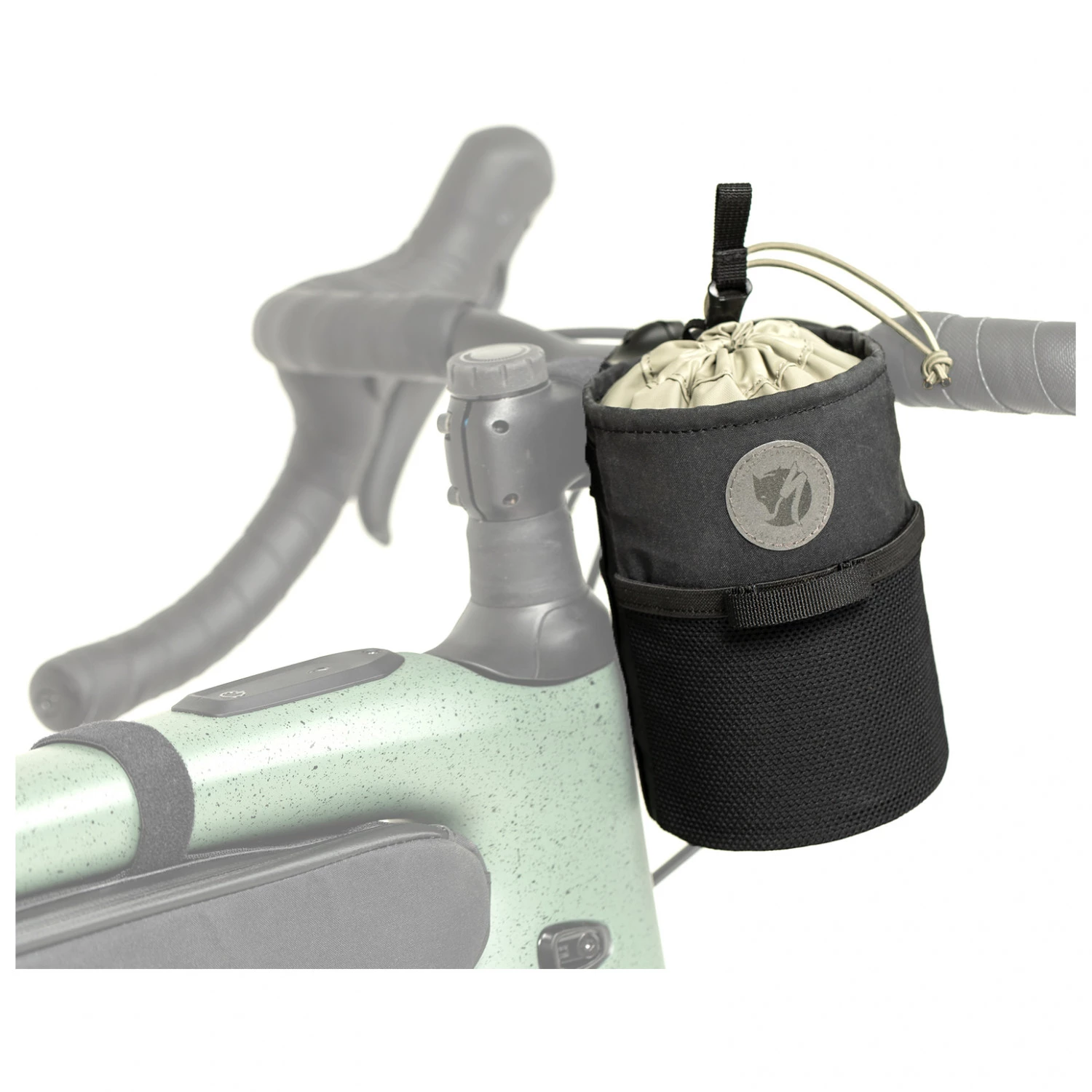 Cette petite sacoche cylindrique se monte rapidement et facilement sur le guidon ou sur la potence de votre vélo grâce à des bandes à scratch. Elle offre de la place pour des choses à grignoter ou même une bouteille d’eau. Une petite poche en filet à l’extérieur offre de la place supplémentaire.